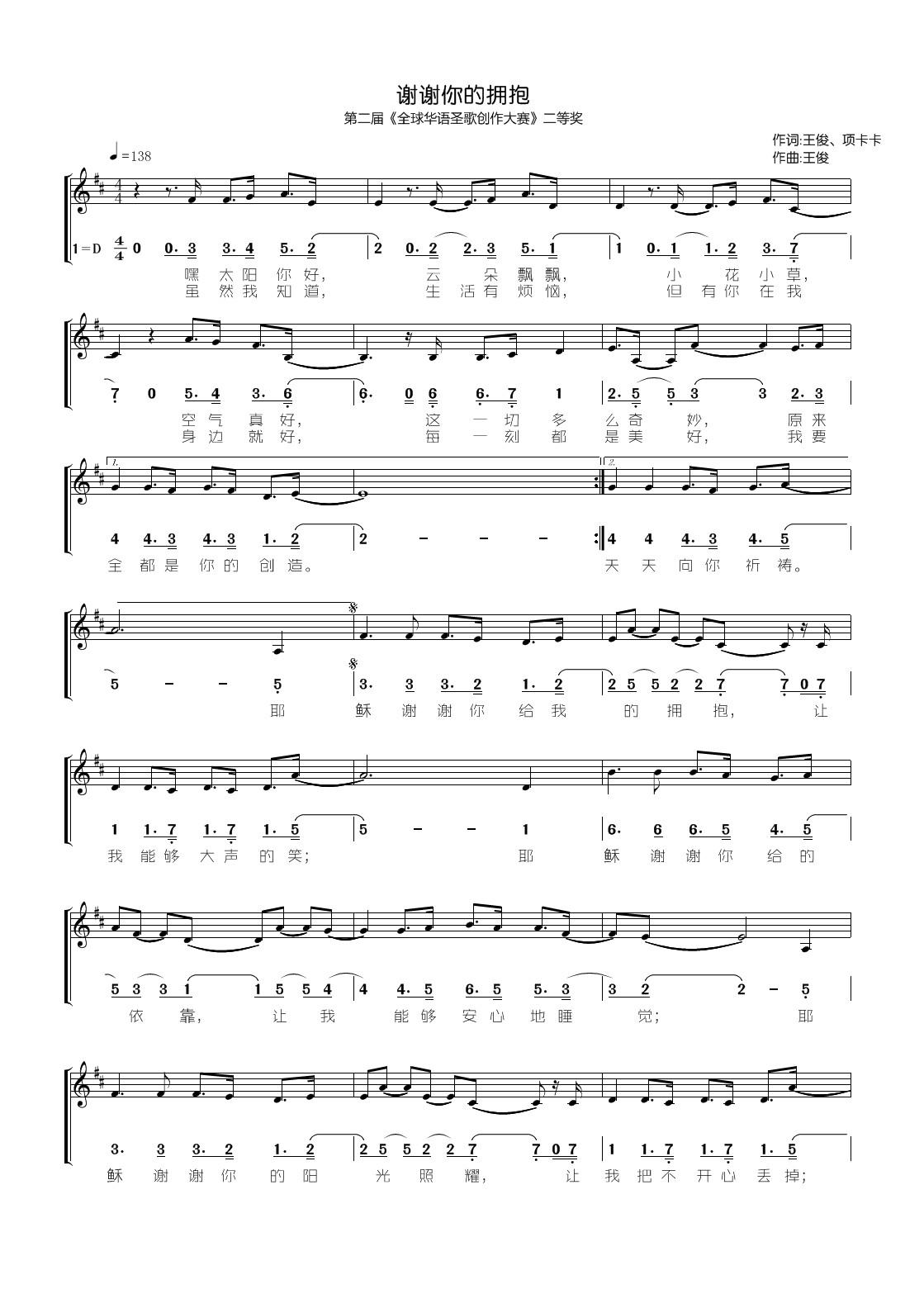 【华语圣歌创作集】60|《谢谢祢的拥抱》——第二届“真理杯”全球华语圣歌创作大赛二等奖作品