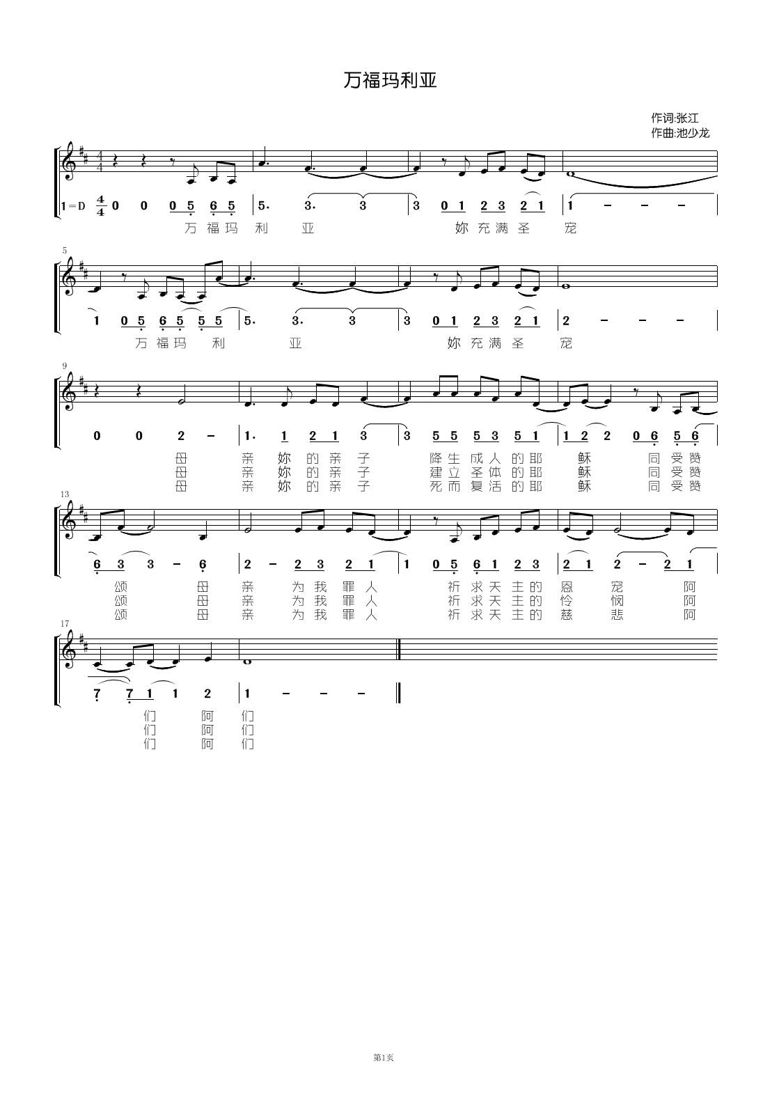 1、母亲,你的亲子,降生成人的耶稣,同受赞颂,母亲,