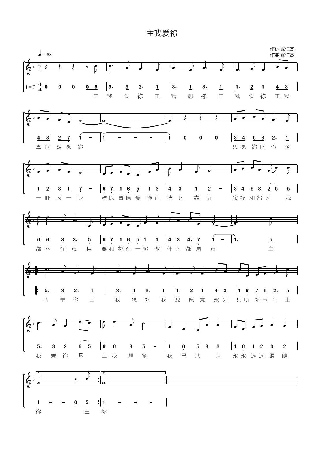 (主我爱祢,主我想祢,主我爱祢,主我真的想念祢)