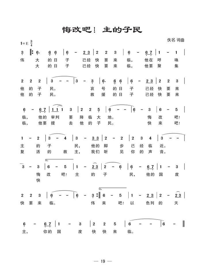 【弥撒用曲-将临期】|016《悔改吧!主的子民》(圣诞歌集19页)