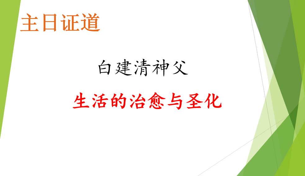 在今天的社会环境中,对于我们而言,“身体的治愈”途径已经很多了,除了中西医的治疗,还有各种的保健和理疗。而“身体的圣化”就是跟随天主子耶稣基督,通过“圣事”,使我们的身体成为“天主圣三的宫殿”,成为天主子耶稣基督的兄弟姊妹,成为天父的爱子爱女。