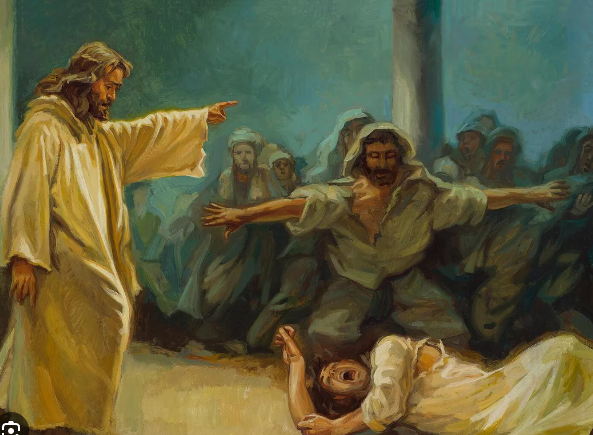 耶稣和门徒进了葛法翁;在安息日,他就进入会堂教训人。人们都惊奇他的教训,因为他教训他们,像一位有权威的人,跟一般经师们不同。当时,在会堂里有一个附着邪魔的人,喊叫说:“纳匝肋的耶稣!我们与你有什么关系呢?你竟来毁灭我们!我知道你是谁,你是天主的圣者。”耶稣斥责它说:“不要作声!从他身上出去吧!”邪魔使那人抽风,大声喊叫着,就从他身上出去了。