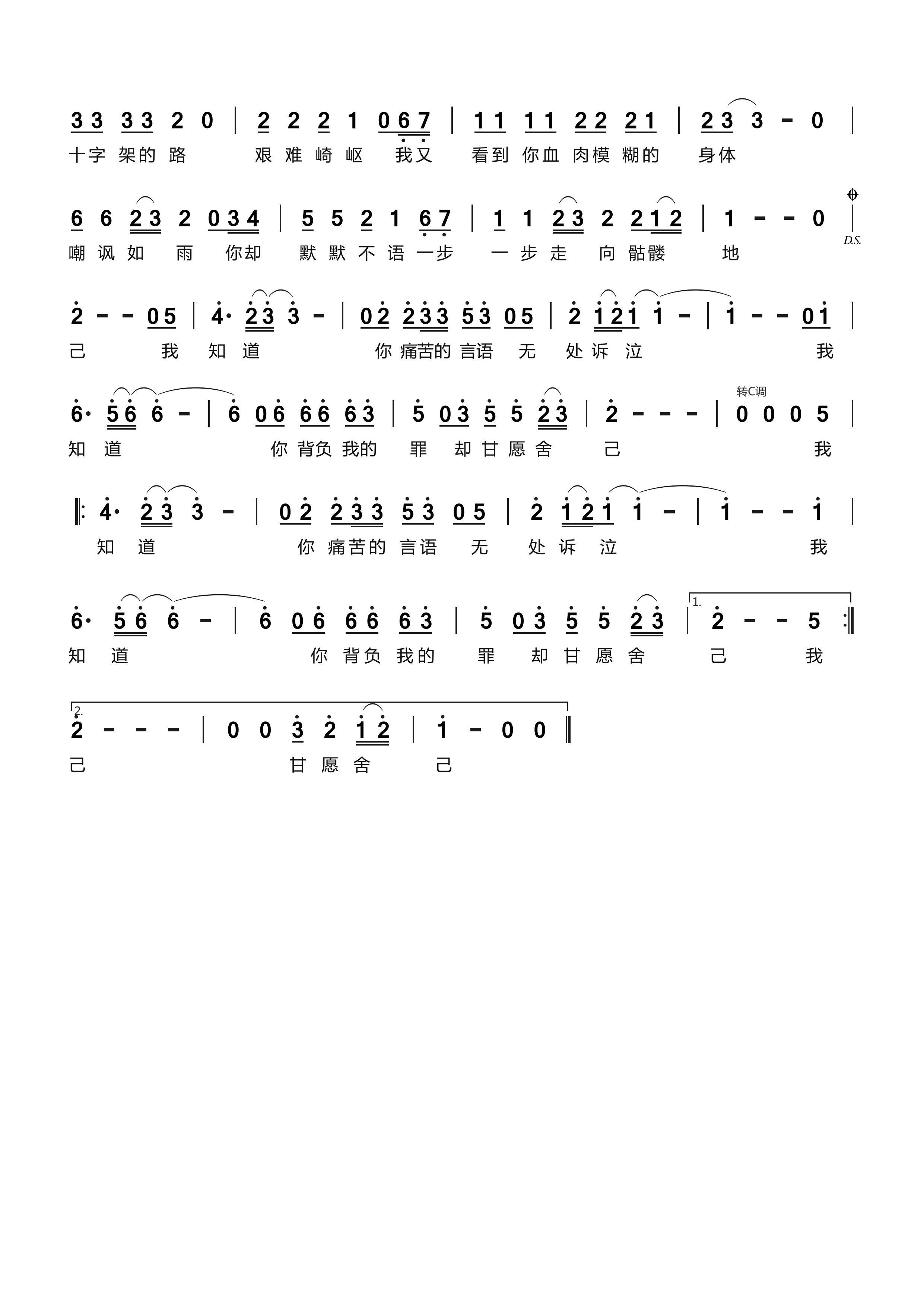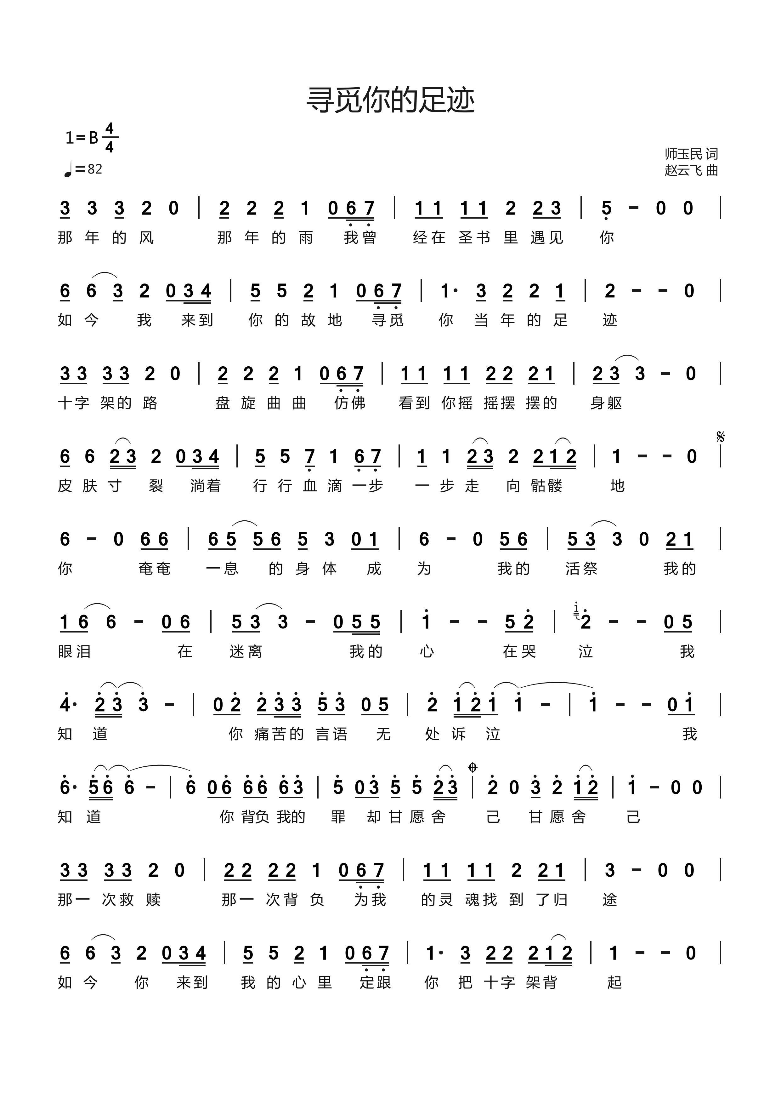 歌词创作于2021年元月,是基于众教友朝圣时所缺少心灵触动、体验而萌发创作的一首吟诵诗歌。诗歌立意精准,构思精巧,主旨鲜明;语言质朴感人,饱含感情;去华藻之风,存朴素之貌,为信众所接受。诗歌结构匀称,韵律和谐,节奏分明,易于颂唱。2024年7月有音乐人赵云飞作曲,焦少磊演唱。歌曲采用通俗唱法,旋律流畅,与歌词内容完美地融合为一体,抒发了救主耶稣为赎人类之罪而甘愿被钉十字架的牺牲精神。。整首歌曲情感千钧,触及心灵,感人至深!