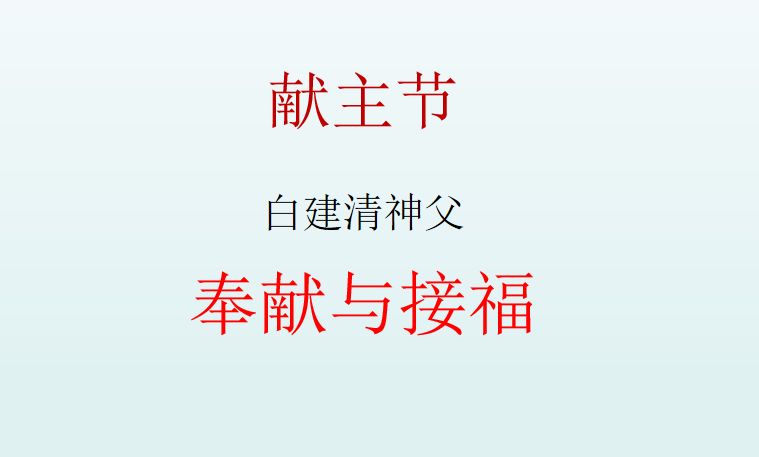 奉献于主,不是牺牲或受苦,而是得福与得宠。因着奉献于主,我们跟随主耶稣,生活在圣神内,每天享受天父的天福。