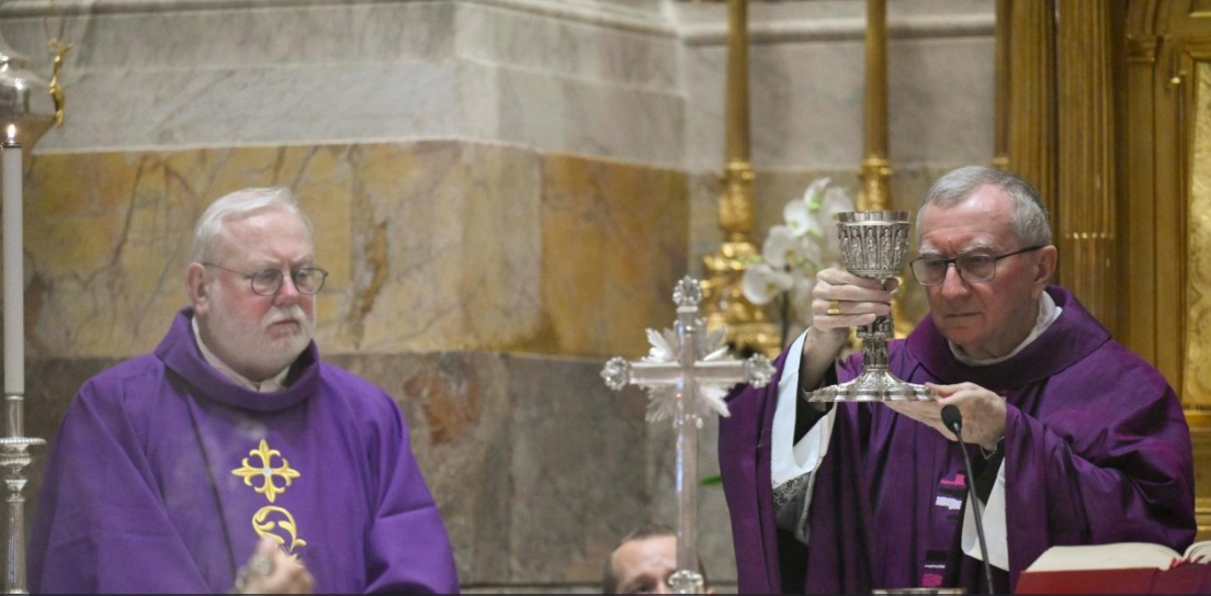 圣座国务卿帕罗林枢机为驻圣座外交使团成员主持弥撒。枢机提及教宗方济各当选的周年纪念,并邀请每个人继续为他的健康祈祷。