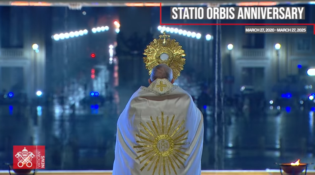 尽管身体不适,教宗方济各仍继续领导教会并倡导和平,就像2020 年 3 月 27 日:教宗在空荡荡的 雨水淋漓的圣伯多禄广场上,恳求主治愈我们受伤的人性,并提醒我们“没有人能独自得救”。在病床上,他做出了 40 多项重要任命,启动了 2028 年教会大会的计划,并多次发出和平呼吁。