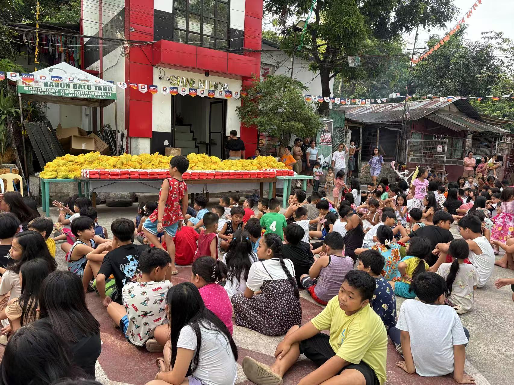 四旬期第五主日下午,亚洲真理电台普通话服务办公室和菲常大家庭一起为200名贫困儿童发送孩子们喜欢吃的快餐(Jollibee)和衣服。