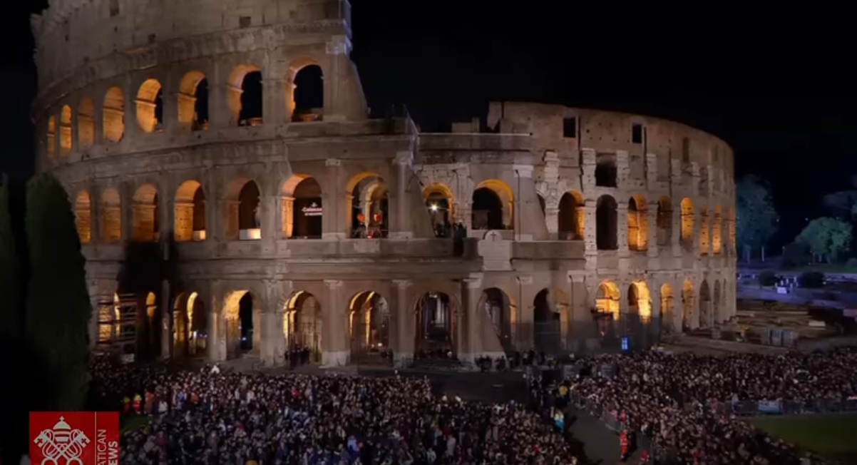据梵蒂冈新闻网英文报道,这是一条为每个人预备的道路——一段内心的旅程,一次良知的反思,在通往加尔瓦略山的路上,驻足于基督的苦难。教宗方济各在苦路默想中表明,十字架之路正是耶稣“走向天主所爱的这个世界”(第二处)的下行之路。它也是基督的“回应,承担责任”。祂“被钉在十字架上”,祂代祷,将自己置于“冲突的双方之间” (第十一处),并将他们带到天主面前,因为祂的“十字架拆毁了围墙,取消了债务,废除了审判,建立了和解”。耶稣是“真正的禧年”,祂脱下衣服,甚至“向那些目睹祂受死的人”显现,祂视他们为“天父所托付的挚爱之人”,表明祂渴望拯救“我们所有人,每一个人”(第十处)。