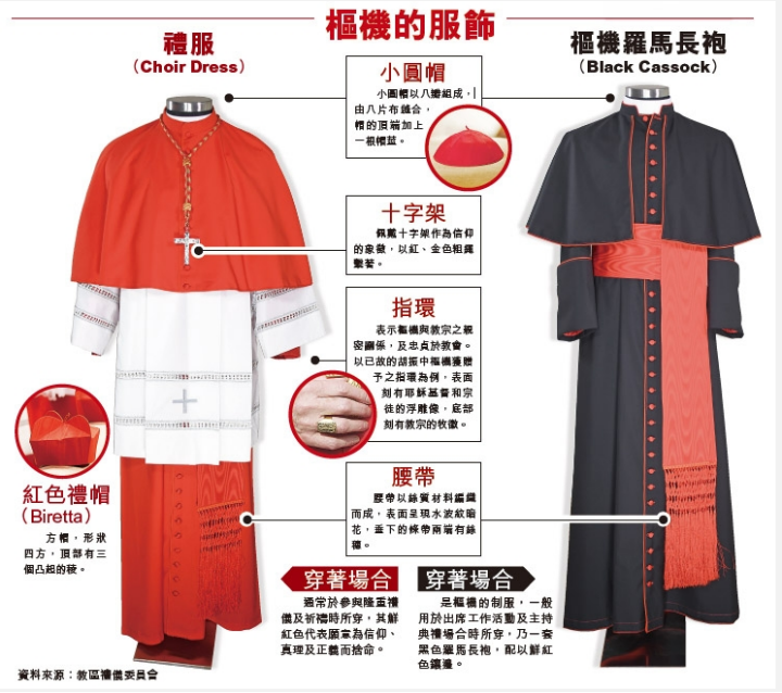 接下来,我们一起来看看枢机主教们穿的服饰,一是“礼服”,一是“罗马长袍”。