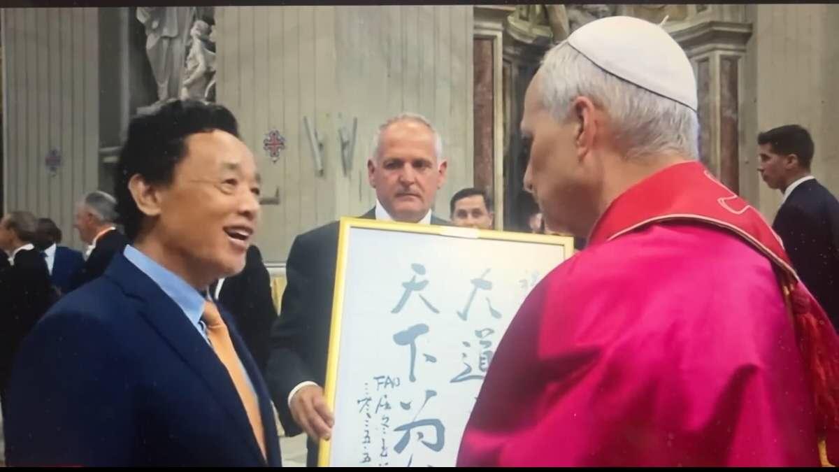 然而,令人瞩目的是,来自中国的屈冬玉——联合国粮食及农业组织总干事、中国共产党党员——以显要身份参与了这场就职弥撒,并在礼仪后,拜见了教宗,且送上了一幅书法作品。此举不仅在教会内外引发热议,更在当下的中梵关系背景下,展现出复杂而微妙的意义信号。