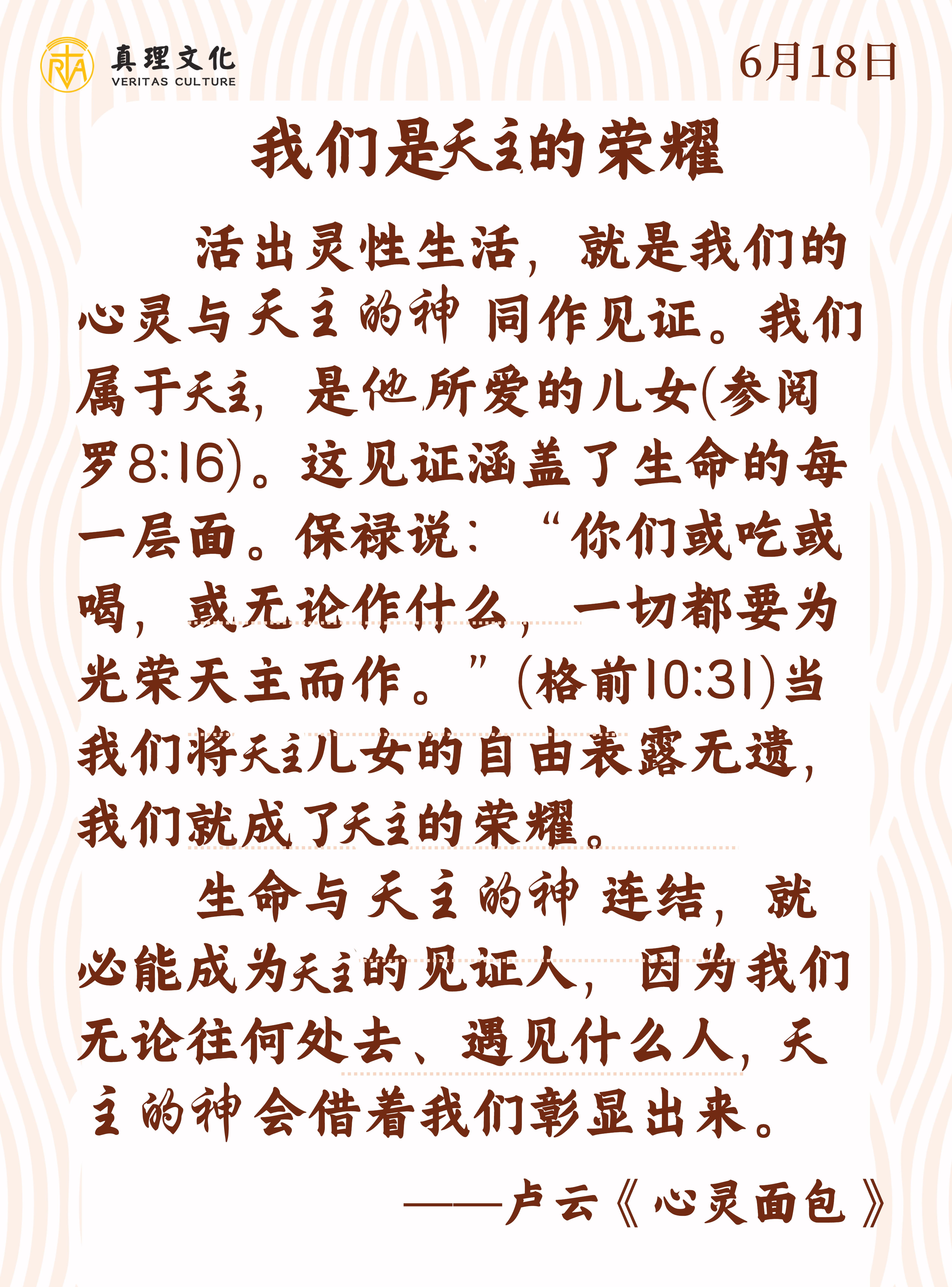 一切为了天父,跟随主耶稣在圣神内荣耀天父,都是救恩的工程。