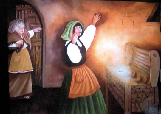 说到这里呢,还有一个小插曲。据说,当时几乎是全城的人都在陪同神父前往主教公署,但是在人群中却有一个人缺席,有一个人没有在。这个人就是那个曾经怂恿年轻女子的女巫。后来,这个女巫也亲口承认:当听到关于圣迹的消息时,她隐藏在家里黑暗的地方,想着要怎样为自己争辩。她决定一口咬定自己是一个善良正义的人,并想要诬告那个女子撒了谎。后来,当有人来找她并叫她到主教前时,这个女巫就去了。后来,她意识到其他信友对她并没有敌意,于是就跪伏在主教脚下,请求宽恕。
