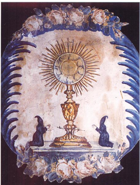 上面提到,由于所处的地理位置,亚维农城就注定经常受到洪水的威胁。在1433年,当时的几条河流由于连日的大雨导致罗纳河暴涨,河水涨高并溢出了堤坊,开始逐步淹没亚维农城。在11月29日,灰衣赔罪会的圣堂受到了洪水的威胁。眼看着大雨滂沱,没有要停的意思,所以修会的长上害怕圣体会受到不断涨高的洪水的波及。为避免亵渎圣体,修会长上决定将圣体迁移到安全地带。