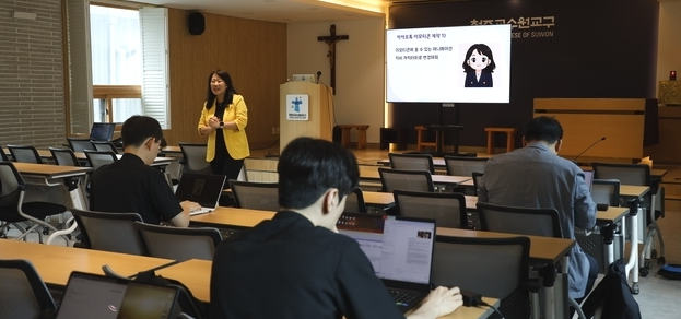 社会传播办公室主任李哲九(Lee Cheol-gu)神父解释说:“鉴于人工智能目前是一个热门话题,其应用领域也在不断拓展,我们为神父们准备了培训,帮助他们学习可用于牧民领域的技能。”