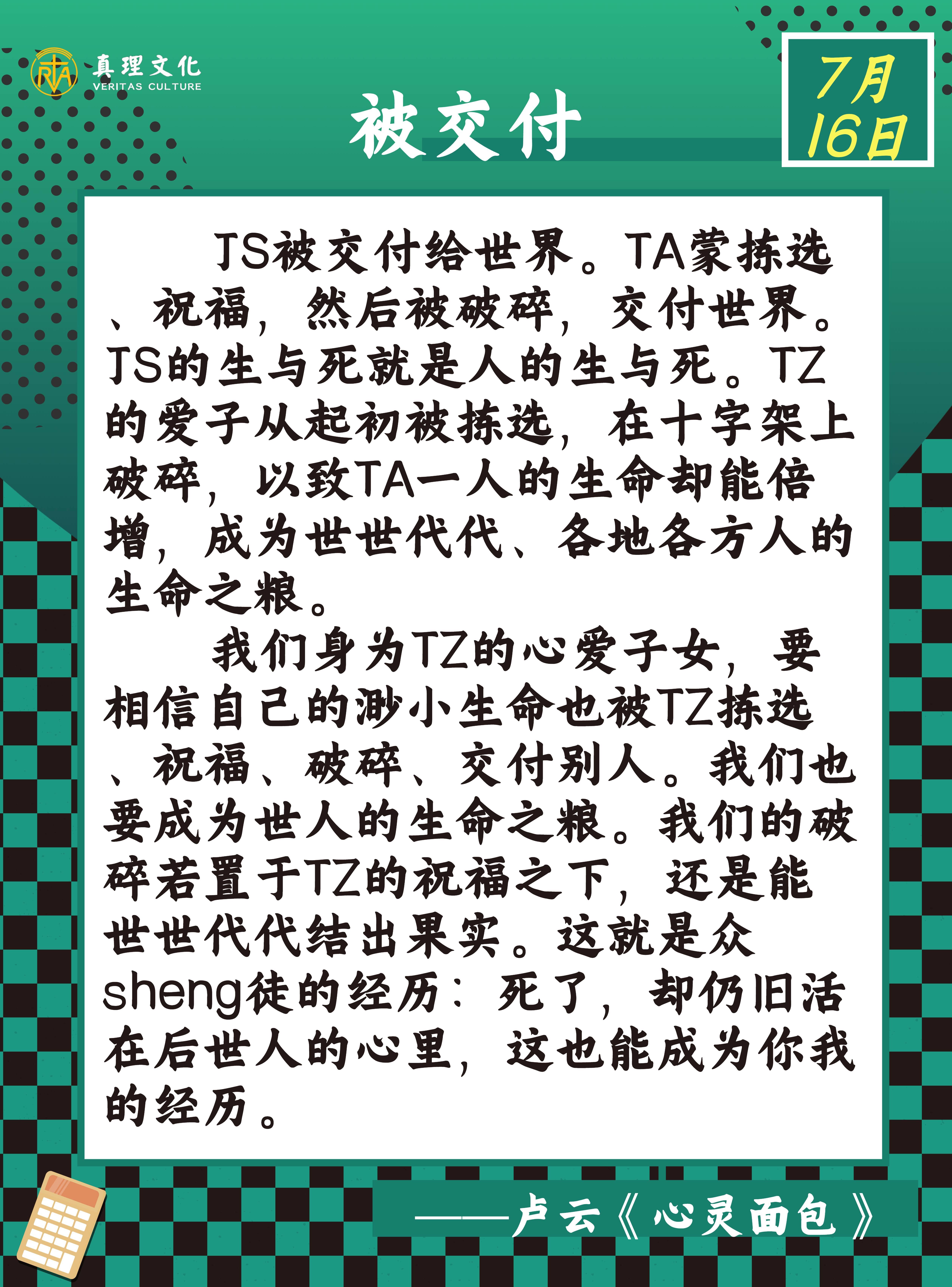 主耶稣基督,感谢祢将救恩带给了我们,祢就是我们的福音,请帮助我们珍惜天福,在每天的悔改更新中善尽责任。阿们.