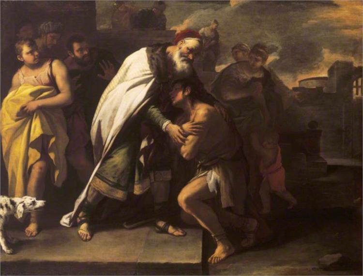 其实,这位老父亲是一位可怜人,在小儿子离家出走后,大儿子更是人心背向,虽然天天和父亲在家,却在心里将自己“降低为工人”,使慈父也失去了另一位儿子。面对大儿子的嫉妒糊涂,老父亲提醒他:“孩子!你常同我在一起,凡我所有的,都是你的;只是因为你这个弟弟,死而复生,失而复得,应当欢宴喜乐”。