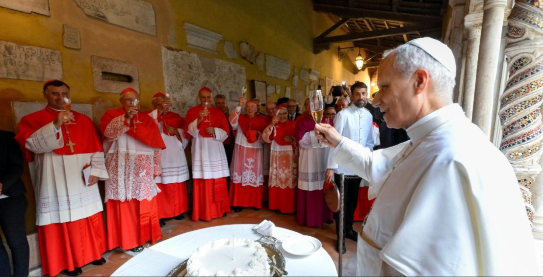 在城外的圣保禄大殿举行的“21 世纪殉道者和信仰见证者纪念活动”结束后,教宗良十四世收到了生日蛋糕和最美好的祝愿。