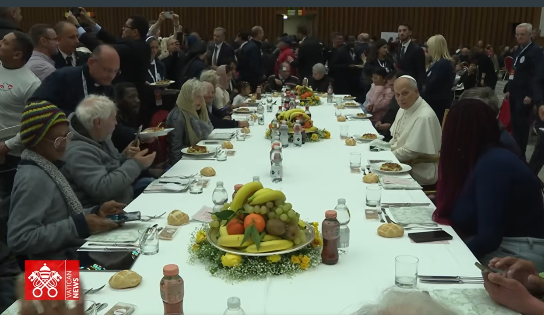 在第九届世界穷人日,教宗良十四世与来自世界各地的约 1300 人共进午餐,并缅怀因暴力、战争和饥饿而遭受苦难的众多人们。