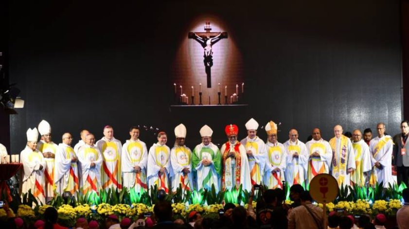 在讲道的最后,波枢机主教提醒与会者:“所有世俗的王国、潮流和科技都是短暂的,但基督的圣言却永存,唯有爱永存,唯有基督的圣言永存。信友们在各自的团体中践行这五道光芒。聆听先于发言,领导是谦卑的服务,包容多元,关爱穷人,并鼓励青年参与。他说道:“过去的耶稣重返亚洲,祂爱的讯息与和解的福音传遍四方,惠及所有愿意聆听的人。”