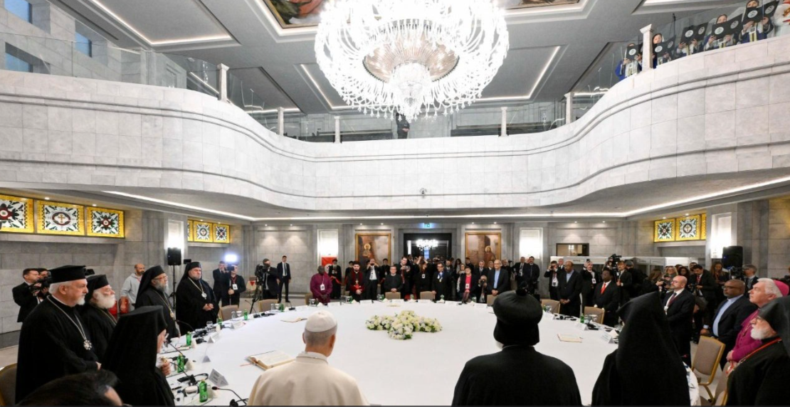 教宗在土耳其叙利亚-东正教圣爱弗冷堂与各教会和基督徒团体领导人和代表私下举行会晤,再次提到尼西亚大公会议召开1700周年的纪念活动。