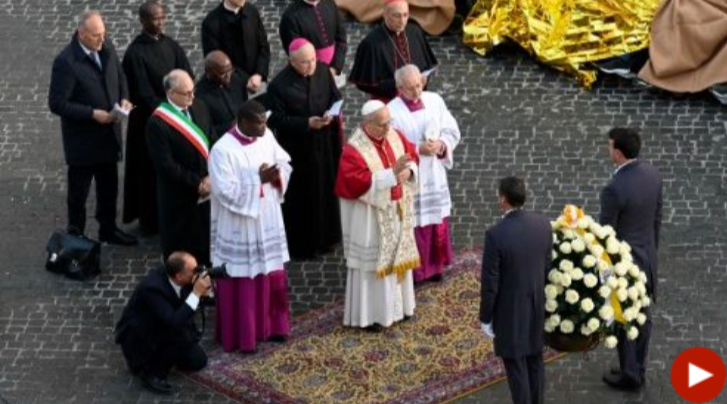 当天下午,罗马市中心的西班牙广场万头攒动,罗马居民和朝圣者蜂拥而至,前来参加这项敬礼活动。教宗抵达后,先是向圣母态像献上鲜花,然后诵念祈祷词,问候圣母说:“万福,充满恩宠者妳的旅途使得罗马的道路洋溢芬芳,比我们今天献给妳的花朵更为浓郁。”