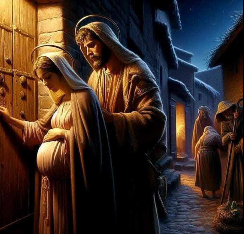 若瑟和怀着身孕的玛利亚,踏上前往白冷小镇的旅程,准备登记参加罗马帝国的人口普查。若瑟和玛利亚跋涉数日,抵达白冷时,不为人知,也无人尊敬。他们疲惫不堪,无家可归,四处寻找栖身之所,但拥挤的客栈已无容身之处。
