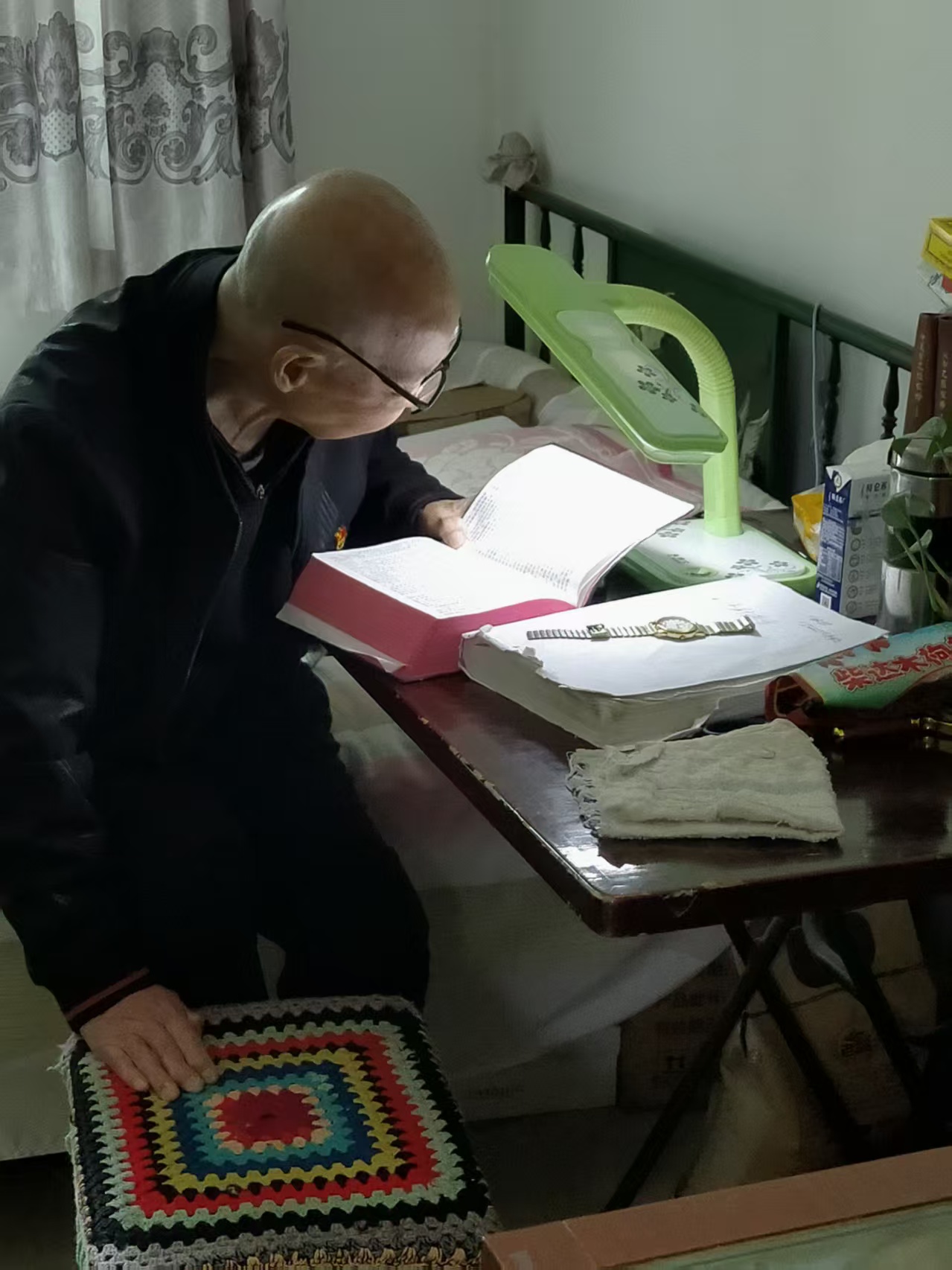 (在病中读圣经的张克勋老先生)