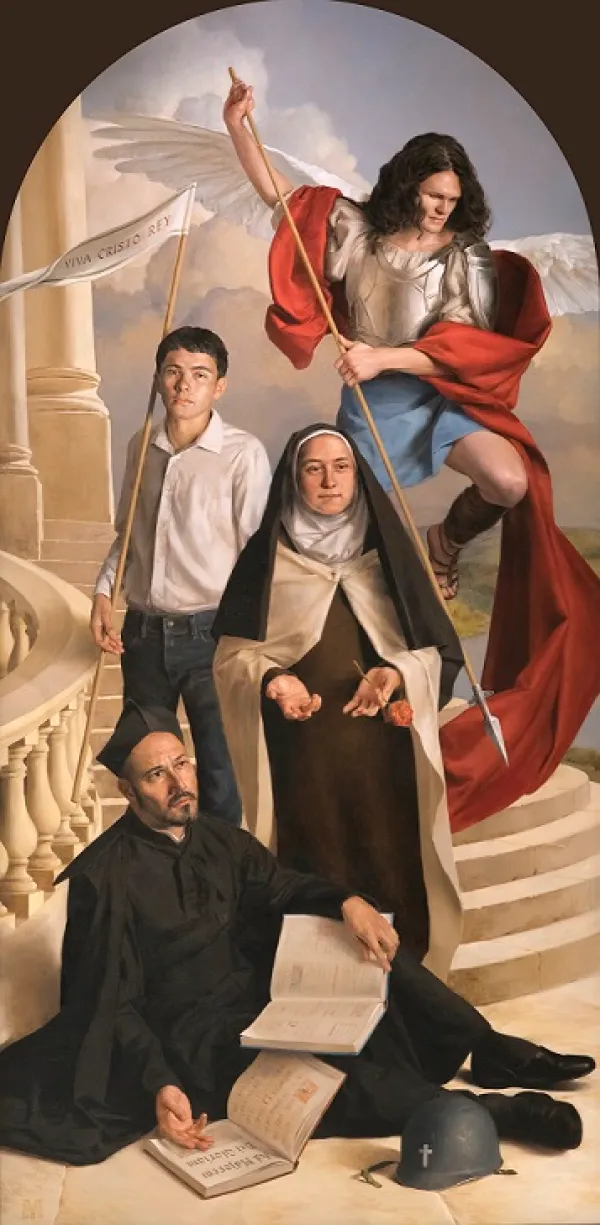 每一个走进位于美国卡帕恩加尔默罗天主教中学(Kapaun Mt. Carmel Catholic High School)圣堂的人,无不驻足惊叹墙上华丽的原创油画。画中的圣人人物形象栩栩如生、美不胜收。但最引人注目的,是圣人们罕见的组合方式。他们仿佛朋友般聚在一起。这所高中,特别强调年轻的圣人。