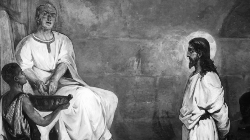 福音书中记载,比拉多面对眼前的囚犯,确实感到困惑不解。在若望福音中,比拉多问道:“什么是真理?”(若18:38),仿佛真理是一个哲学难题,而不是眼前这个被打得遍体鳞伤、沉默不语的活生生的人。路加福音记载,比拉多说:“我在这人身上查不出什么罪状来”(路23:4),甚至把耶稣送到黑落德那里,或许是希望有其他权威能替他承担责任。玛窦福音则告诉我们,比拉多的妻子差人到他跟前说:“你千万不要干涉那义人的事,因为我为他,今天在梦中受了许多苦。(玛 27:19)。