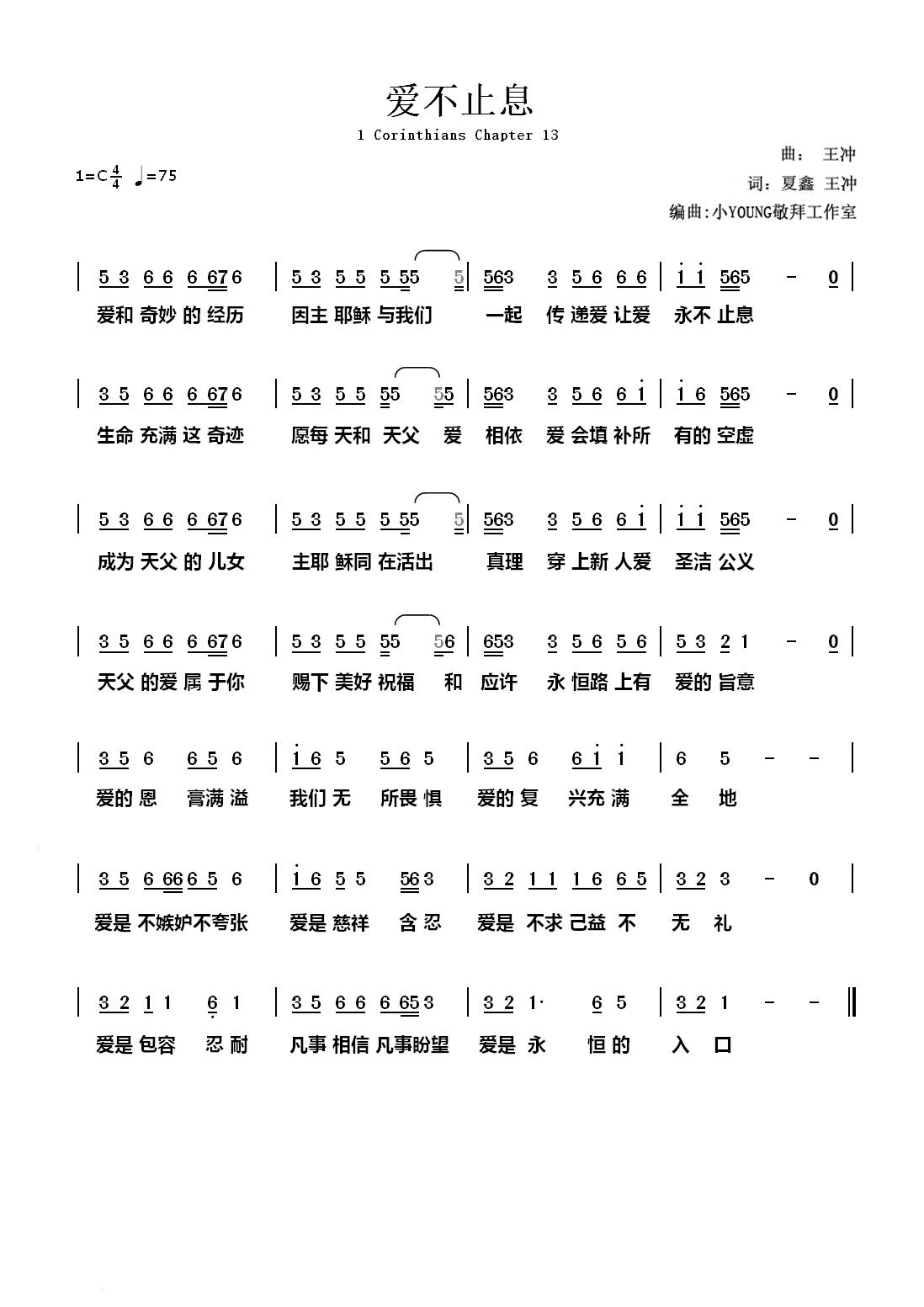爱是不嫉妒不夸张 爱是慈祥含忍 爱是不求己益不无礼
