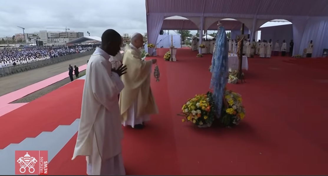 参与此次活动的志愿者费尔南达(Fernanda)说,许多人提前几天就抵达,搭起帐篷露营,准备迎接教宗。他们的耐心终于得到了回报,教宗乘坐直升机从罗安达抵达。他在圣殿内的教堂祈祷,并在玛玛·穆希玛(Mamã Muxima)雕像脚下献上白色鲜花。随后,他乘坐教宗座驾疾驰而过,人群欢呼雀跃,追随他而去,试图尽可能靠近这位伯多禄的继承人。