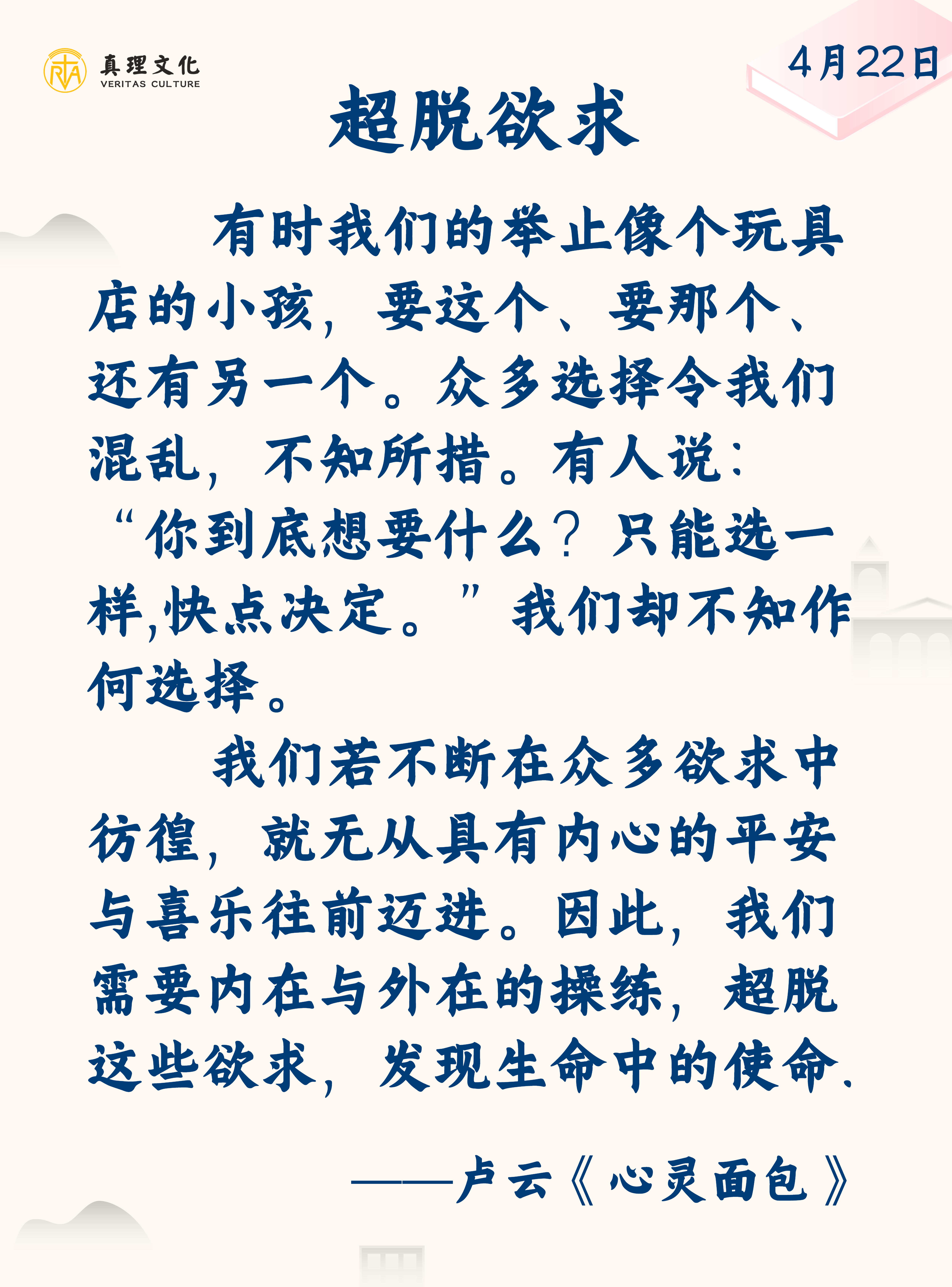群众在渴求的,其实是一个人 — 耶稣本人。信耶稣,就会心满意足。祂要赐人永生:「……凡看见子,并信从子的,必获得永生」(若6:40)。