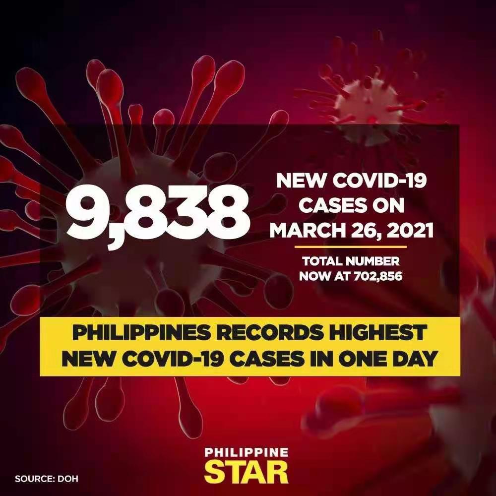 自进入3月份以来,菲律宾单日新冠确诊个案从一千多例开始持续飙升,并不断打破日确诊纪录,于3月26日达到了9838例,逼近1万例。仅过去10天的确诊人数就占了该国总确诊人数的十分之一。而该国去年疫情最严重的时候,最高单日确诊个案也仅为8月10日的6958例。