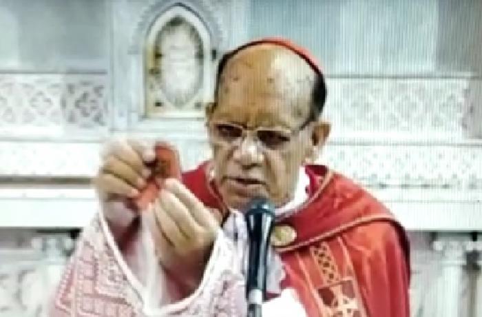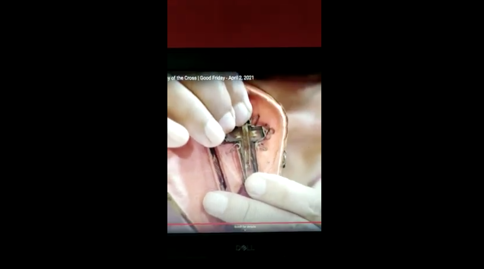 受新冠防疫措施限制,印度主教团主席、孟买总主教格拉西亚斯枢机于4月2日圣周五晚上,通过网络直播带领信友拜苦路。在仪式的最后,他用“耶稣被钉的十字架真木碎片圣髑”降福信友。