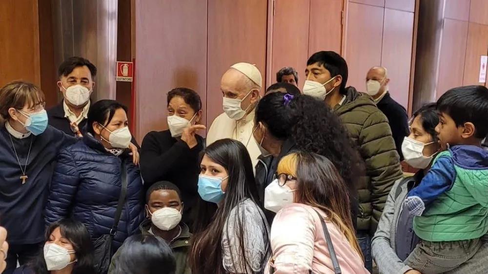 4月2日圣周五上午10时许,教宗方济各来到梵蒂冈保禄六世大厅,看望了在那里接种疫苗的无家可归者和有困难的人,这些人在罗马一些协会成员的陪伴下前来。