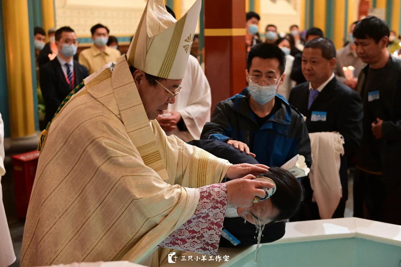 4月3日晚,北京教区李山主教在西什库主教座堂,带领众神父及教友举行复活前夕守夜礼。据“三只小羊工作室”微信公众号报道,在当天的礼仪中,有77位兄弟姐妹领受了洗礼,成为了教会大家庭中的一员。