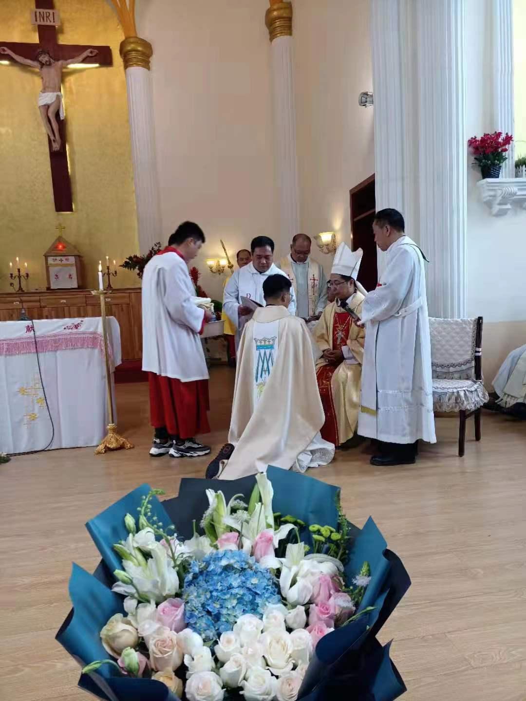 本台消息:今天(4月20日),河南郑州教区在郑州市露德圣母堂为常晓亮执事举行晋铎弥撒典礼。典礼由河南安阳教区张银林主教主礼,郑州教区王跃胜神父襄礼,以及约30位神父共祭。