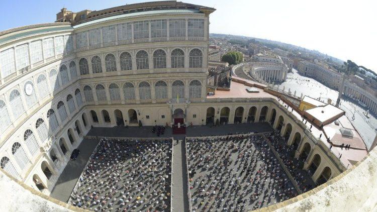 约六个月之后,自去年9月2日起,该活动恢复有信友参加,活动地点在梵蒂冈圣达玛索庭院。