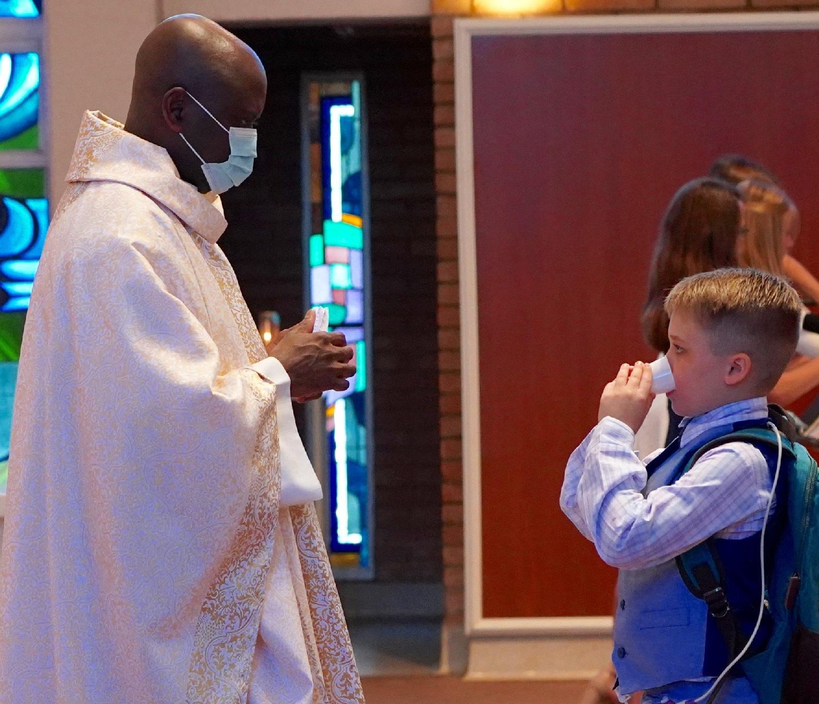 来自美国德克萨斯州维多利亚教区圣安多尼堂的卡尔森(Carson Crosby),现在是当地一所天主教学校的小学生,他患有遗传性线粒体疾病,无法直接口服食物或饮品,需要通过一根喂食管来摄取营养,而这也成了他初领圣体的阻碍。在维多利亚教区和美国天主教残障人士伙伴(National Catholic Partnership on Disability)的帮助下,小卡尔森排除困难,顺利完成了初领圣体仪式。
