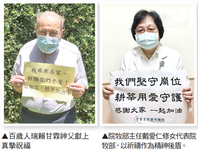 在紧张的疫情形势下,台湾天主教耕莘医院院牧部同仁们怀着不舍和疼惜之心,除了为全院平安热切祈祷外,更发起了募集祈福加油照片的活动。