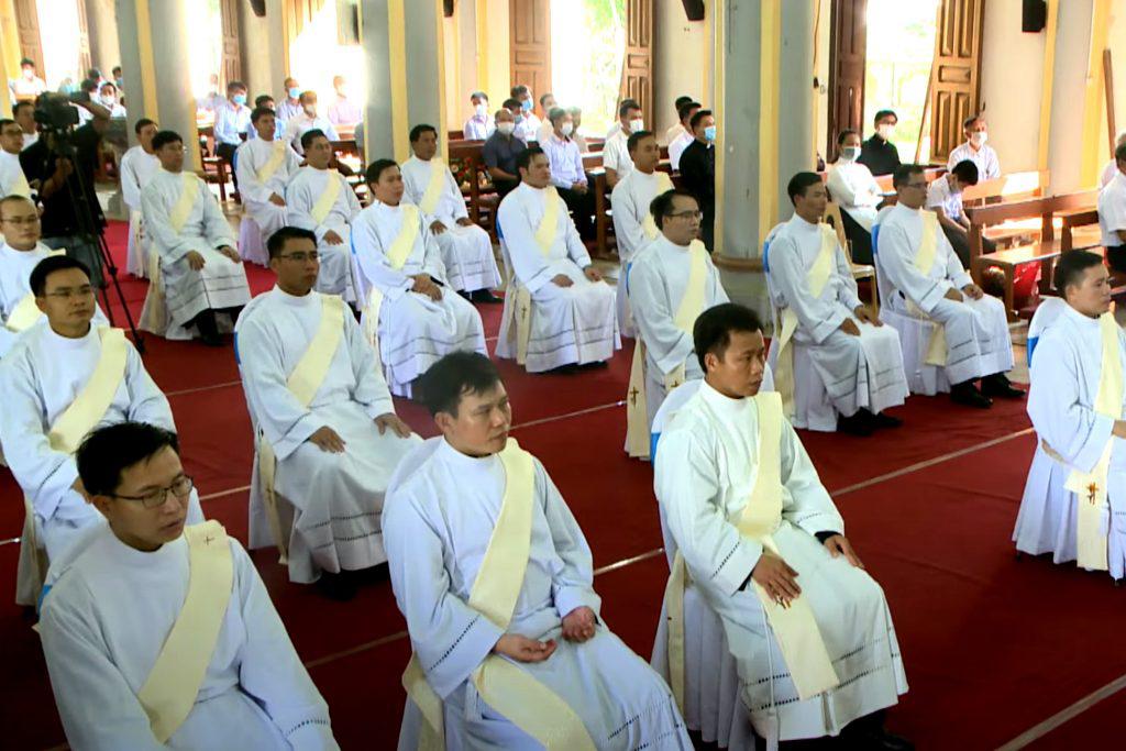 本次晋铎典礼由荣市教区阮友龙(Nguyen Huu Long)主教主礼,在典礼的弥撒讲道中,阮主教祈愿这些新司铎,在这新冠疫情的特殊时刻,给受伤的心灵带去关怀和怜悯。据美国约翰斯·霍普金斯大学网站数据,自今年七月以来,越南新冠疫情进入一波大爆发,单日确诊新冠个案由之前的几百例迅速飙升至几千例,甚至在7月27日突破了一万例。