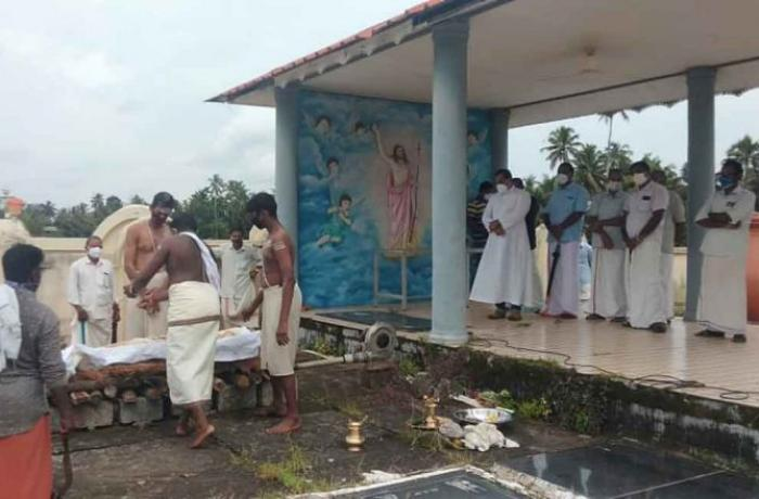 近日,印度喀拉拉邦阿勒皮(Alleppey/Alappuzha)附近拉曼卡里(Ramankary)村圣若瑟堂的瓦尔格什斯(Varghese Mathilakathukuzhy)神父,提供了一个天主教墓地场所,为一位去世的68岁印度教妇女举行火葬。