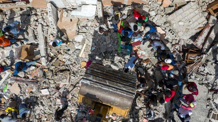 海地地震重灾区昂萨沃-米拉瓜纳教区主教杜马(Pierre André Dumas)日前表示,该教区超过一半的教堂已不存在,尽管如此,司铎们依然临在:他们陪伴信众,尽量满足他们的需求。司铎们在人们中展示出,天主不会遗弃祂的子民。