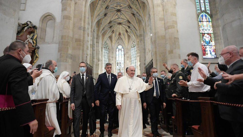 在会见斯洛伐克圣职人员和平信徒时,教宗指出,斯洛伐克人民今天需要一个“培养内心自由和负责任”的教会,她身在历史和文化中,却“懂得具有创造性,与世界对话”。因此,教宗指明一个谦卑教会应走的道路,“不脱离世界和生活”,却要“居于其内”,分担众人的期待。