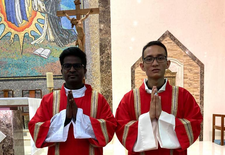 据本台英语网站报道,两位修士的名字分别为:柯高(Gabriel Robinson Kyaw Ko Ko)和敏特(Saw Justin Kaung Hbown Myint)。柯高来自缅甸首都仰光,于9年前加入道明会。柯高执事在一份信息中表示,自从进入修会以来,上主一直亲自带领他,克服优柔寡断、度过许多艰难时刻,他也感受到上主在他个人灵性成长过程中的陪伴。