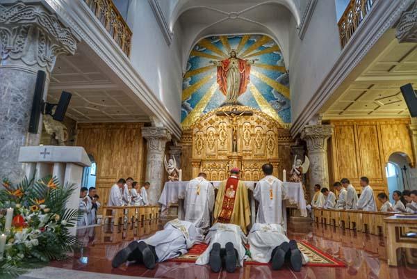 9月25日,浙江天主教会迎来一大喜事。当天上午,台州教区文小敏、朱鑫超,以及温州教区史永详三位执事的晋铎典礼,在台州教区椒江耶稣圣心堂隆重举行。晋铎弥撒由宁波教区金仰科主教主礼,来自各教区及台州教区共23位神父共祭,为遵守防疫措施,仅新铎亲朋好友及信友共百余人参礼。