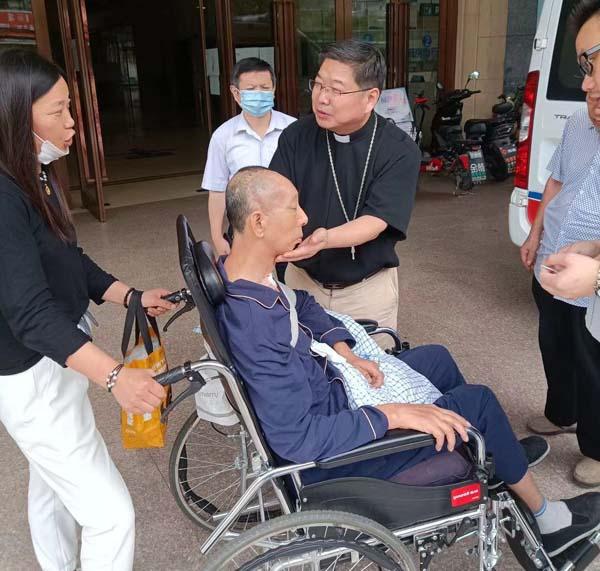 9月28日,安徽教区刘新红主教在教区铎职弟兄的陪同下,前往蚌埠健桥康复医院,探望在那里接受治疗的王新建神父,并送上节日的祝福。
