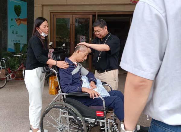 据信德网报道,刘主教一行与王神父见面后,首先带领大家诵念天主经、圣母经和圣三光荣颂,并覆手降福王神父。随后,刘主教听取王神父目前康复治疗的效果,并感谢神父家人及教友的细心照顾。