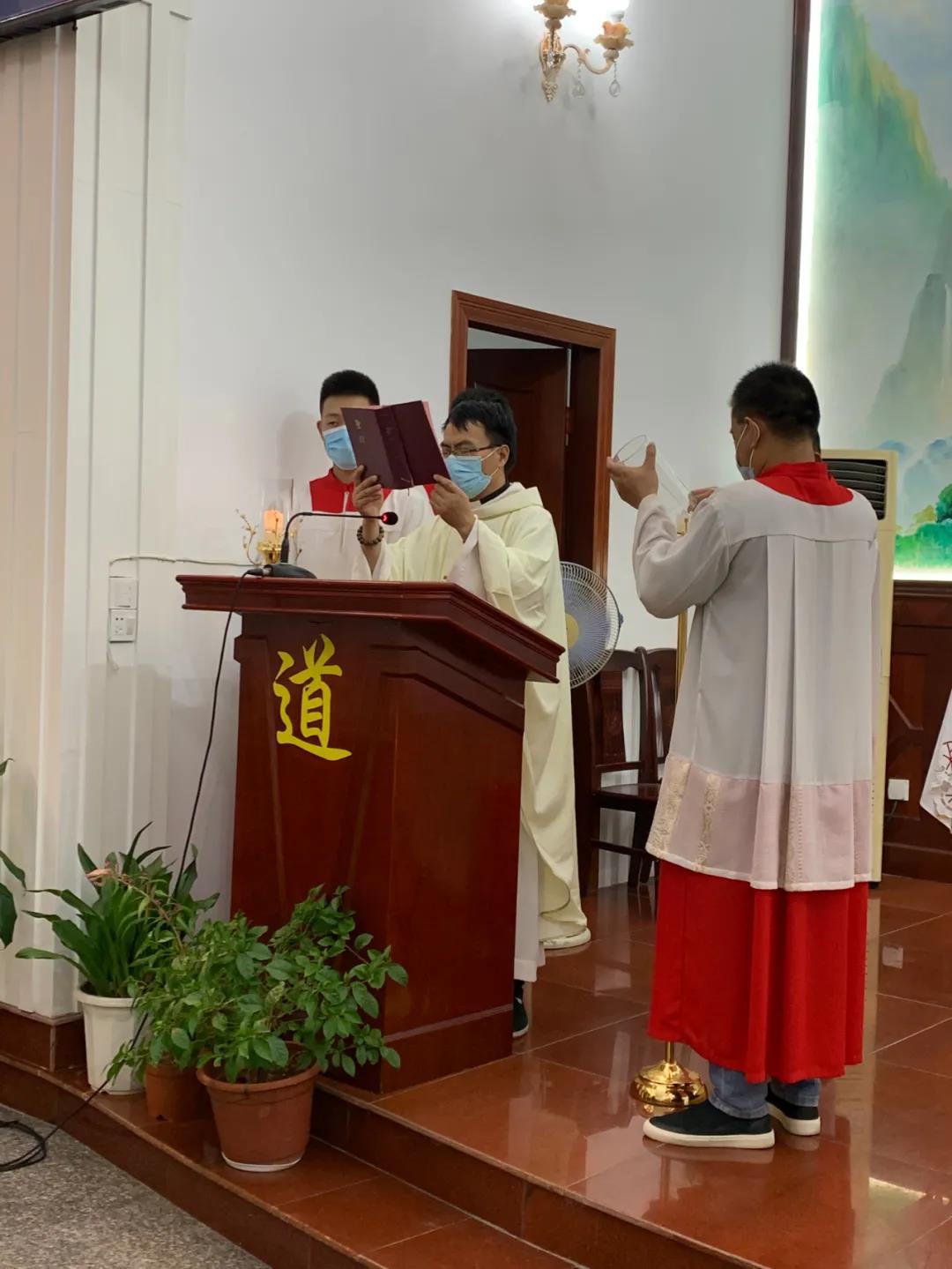 据宁波教区内部通讯“芥菜籽”公众号消息,当晚的庆典在堂口腰鼓队和乐队的欢奏中拉开序幕,庆典弥撒则于晚上7点30分开始,由逍林堂区主任司铎潘神父主礼。