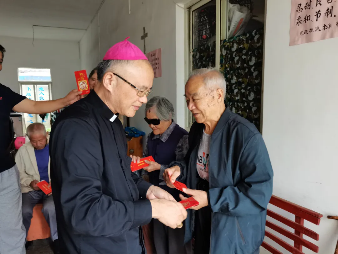 据宁波教区内部通讯《芥菜籽》报道,该教区金仰科主教于当天上午看望了奉化畸山天主堂敬老院老人及住在镇海天主堂的两位修道人的父亲。主教向老人们嘘寒问暖,并给每位老人送上一只小小的红包,又为他们覆手降福。在慰问中,金主教特别强调,老人不是社会的负担,而是社会的基石。